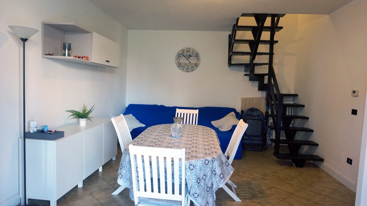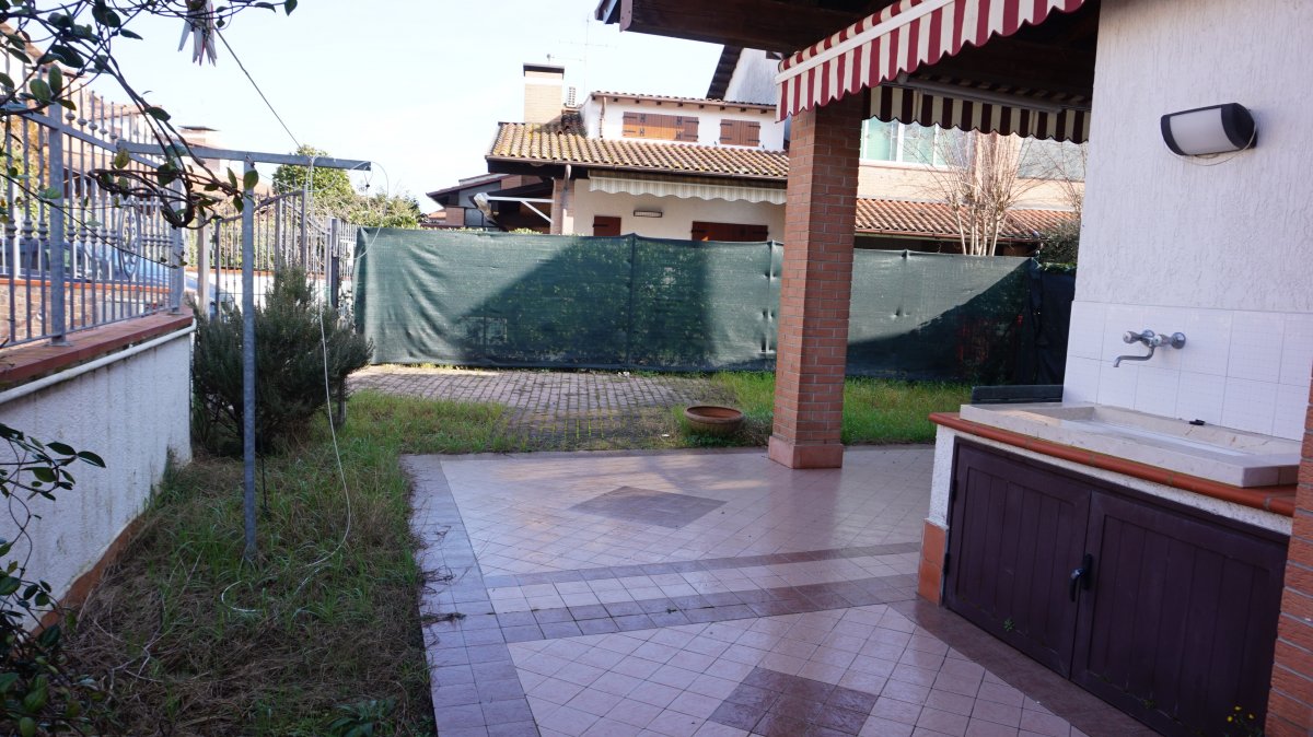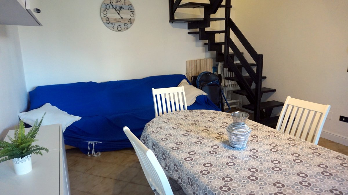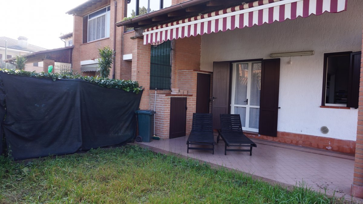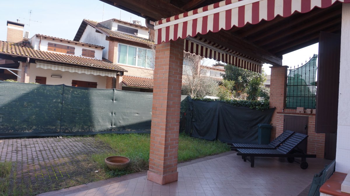 Villetta d'angolo in verticale, in ottima posizione, dista meno di 600 mt. dal mare, in contesto residenziale di prestigio e relax, composta da: Ampio soggiorno, cucinotto, due camere da letto matrimoniali con aria condizionata, due bagni, bellissimo giardino d'angolo con porticato e tenda da sole, TV, lavatrice, posto auto, biciclette a disposizione! POSTI LETTO 6/7
